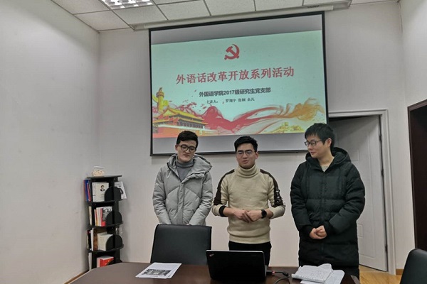 为庆祝改革开放40周年大会隆重召开,12月18日晚,番号 2017级研究生党支部在院楼219室展开“外语话改革开放”系列特色活动。支部全体党员、发展对象、入党积极分子参加了此次支部活动,并在开始之前重温了庆祝改革开放40周年大会的精神。余凡、张桐和罗翔宇以改革开放40周年为切入点,从民生变化、国内外主流媒体报道等方面为支部成员讲述了改革开放的故事。余凡从改革开放40年以来,人民生活各方面的变化做了简单阐述,自...