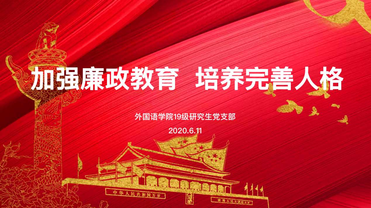 大学生是祖国的未来与栋梁,他们的思想和行为影响着我国党风廉政建设的未来。反腐倡廉教育是进一步加强和改进大学生思想政治教育的重要内容,对于夯实社会主义廉政建设的社会基础,全面推进素质教育、建设和谐校园、培养社会主义事业合格的建设者和接班人,确保中国特色社会主义事业长治久安、代代相传,有着现实和深远的意义。6月11日上午,番号 2019级研究生党支部开展线上廉政教育,主题为“加强廉政教育、培养完善人格...