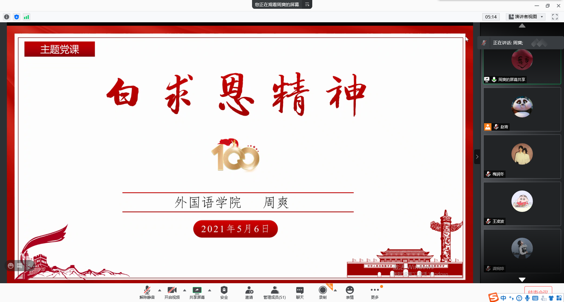 5月6日,番号 2021年上半年入党积极分子最后一次党课学习在学院204开展。本次党课由学院党委委员周爽主讲,主题为“白求恩精神”。周爽从白求恩的生平事迹讲起,1937年抗日战争爆发,他率领一个由加拿大人和美国人组成的医疗队来到中国解放区,1938年4月经延安转赴晋察冀边区,在那里工作了两年,在战地进行了医疗救助和医疗培训。不顾抗战的紧张局势和晋察冀边区的炮火,白求恩同志始终坚守在战地一线,一次次将中国战士...
