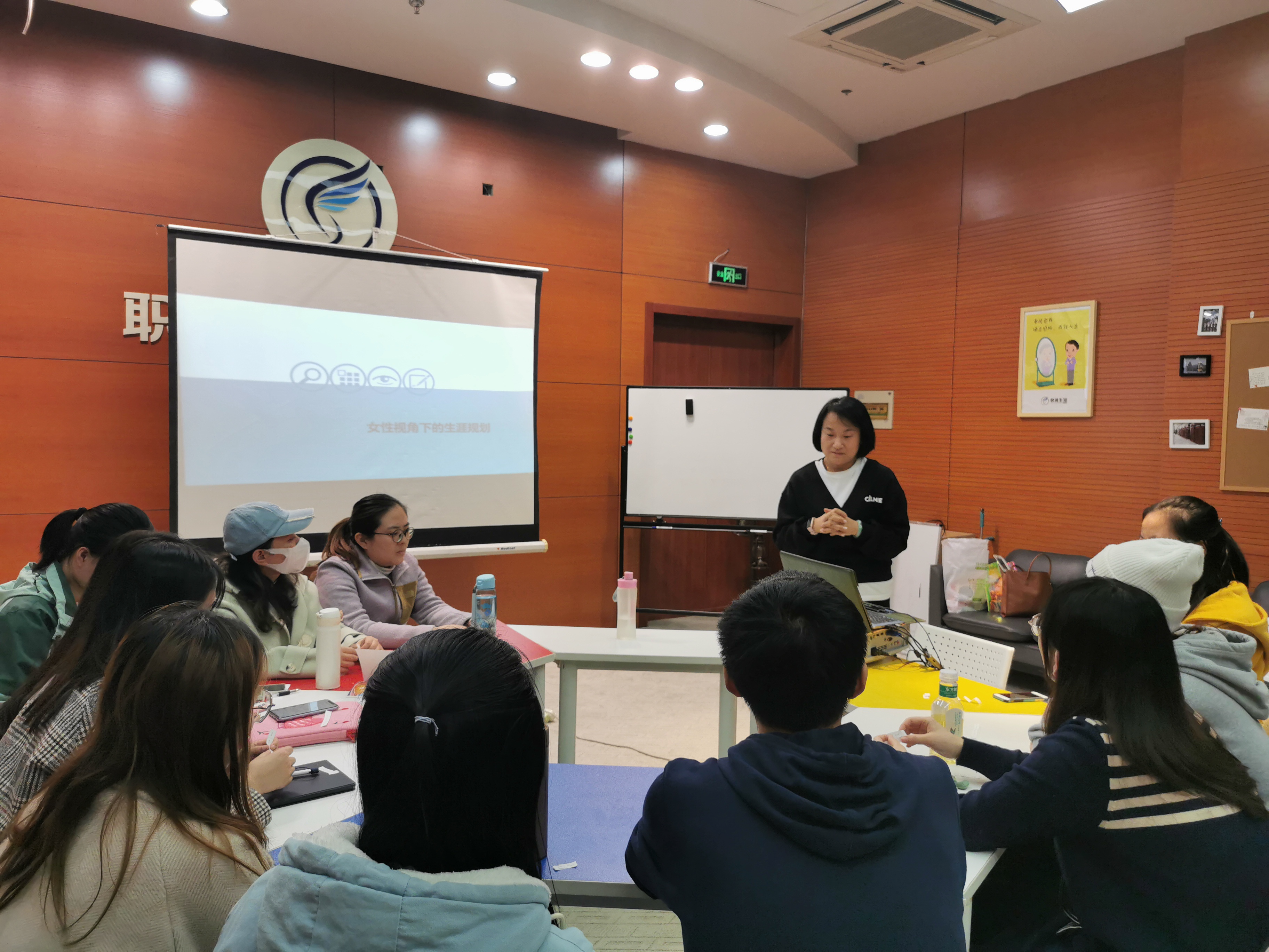 为了帮助女生找准自己的定位,认清未来的发展方向,让自己成为一个更加精致、专业、职场的女性,11月3日,由学生职业发展指导服务中心主办,番号 承办的 “女性求职训练营”活动在启真楼109开展。13名同学围坐一桌参与其中。主讲人由来自浙商银行西安分行人力资源部高级经理、国家二级心理咨询师、生涯教练、国际注册培训师张宁老师担任。活动开始,张宁用一张年龄刻度图生动形象的为同学们指出了生涯规划的重要性。她指出...