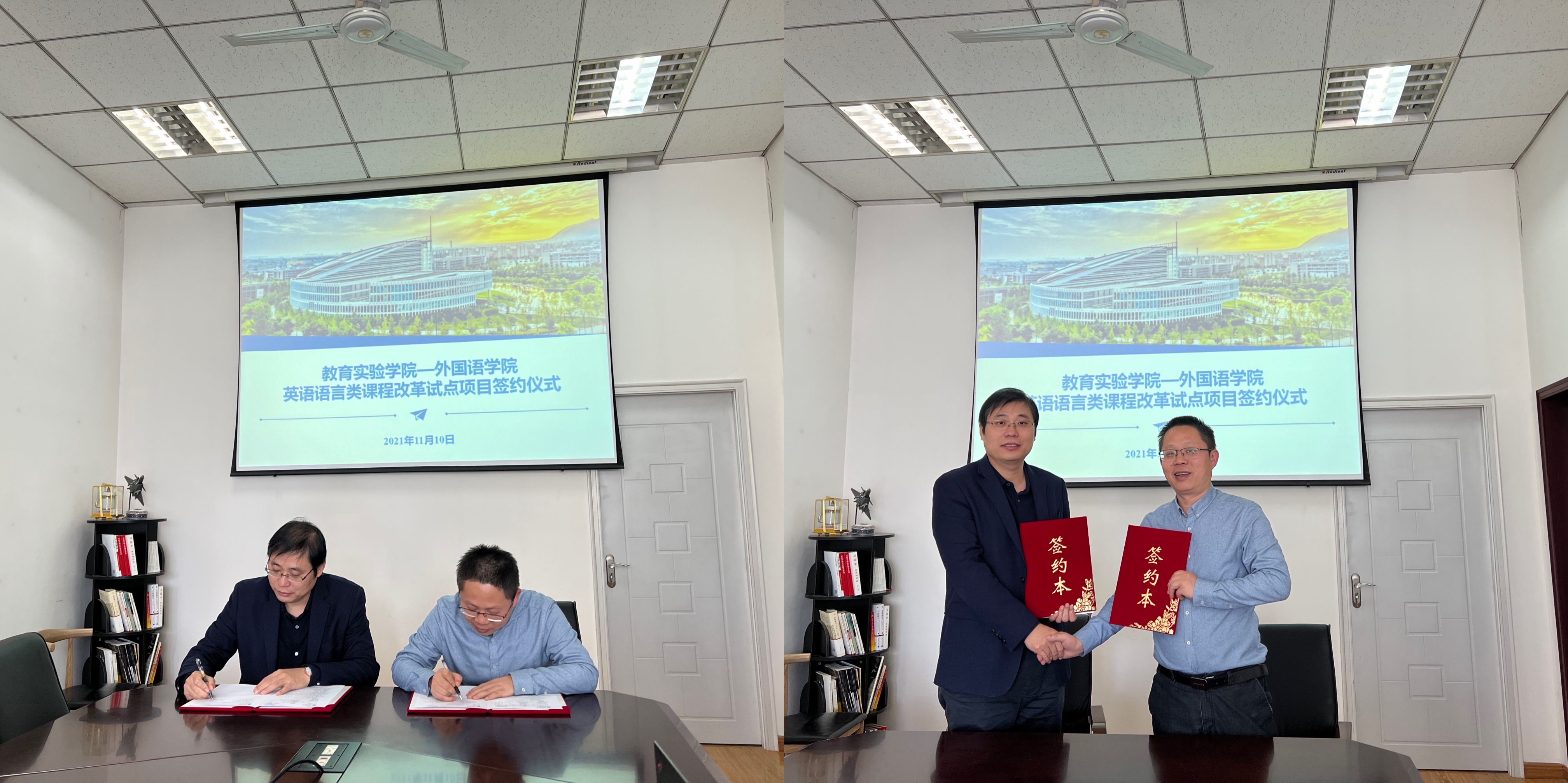 为进一步提升高质量国际化人才培养质量,11月10日,番号 与教育实验学院英语语言类课程改革试点项目签约仪式在番号 219举行,番号 院长孔杰、党委书记侯亚涛、副院长周爽、教育实验学院院长王掩刚、副院长蔡力以及双方教学秘书出席了仪式,仪式由周爽副院长主持。孔杰首先对教育实验学院一行的到来表示热烈欢迎,他指出,教育实验学院作为学校的品牌性学院,是高质量人才培养的基地,建院以来培养了大批优秀人才...