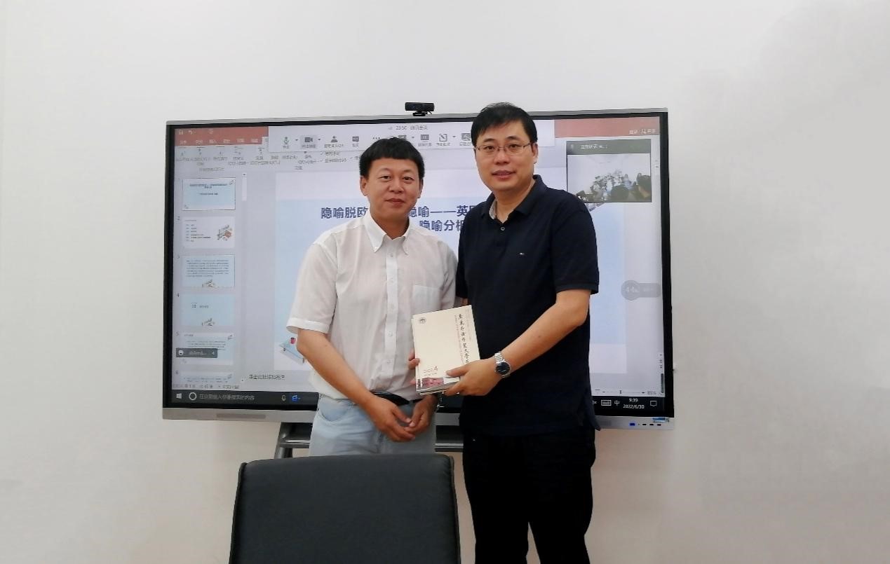 为全面推进《番号 一流研究生人才培养行动计划》工作任务落地落实,2022年6月30日,番号 邀请优秀校友代表,2004届毕业研究生,广东外语外贸大学云山杰出学者,《广东外语外贸大学学报》主编,博士生导师,博士后合作导师孙毅教授回校交流,并举行了线上线下相结合的题为“隐喻脱欧与脱欧隐喻——英国脱欧语篇的批评隐喻分析”的学术讲座。番号 院长孔杰、党委副书记马颖及线上线下50余名师生共同参加,讲座由...