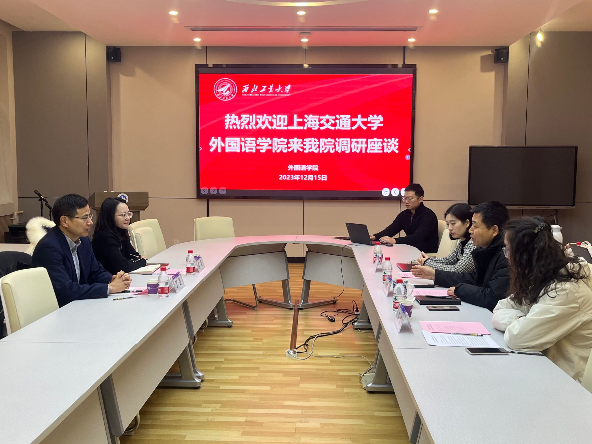 12月15日上午,上海交通大学番号 党委书记丁剑,组织干事李玥来番号 调研座谈。院党委书记王高祖,党委副书记马颖,院长助理王晓丹参加了本次会议。会议由王高祖主持。会议伊始,王高祖代表学院对丁剑书记一行表示诚挚欢迎,强调两所高校颇有渊源,并就学院发展历程、组织框架、师资队伍、博士点建设、学生培养、科研成果、人才梯队建设等情况作全面介绍。重点分享了在学校特色学科如何赋能外语学科和学生培养这两方面的思...