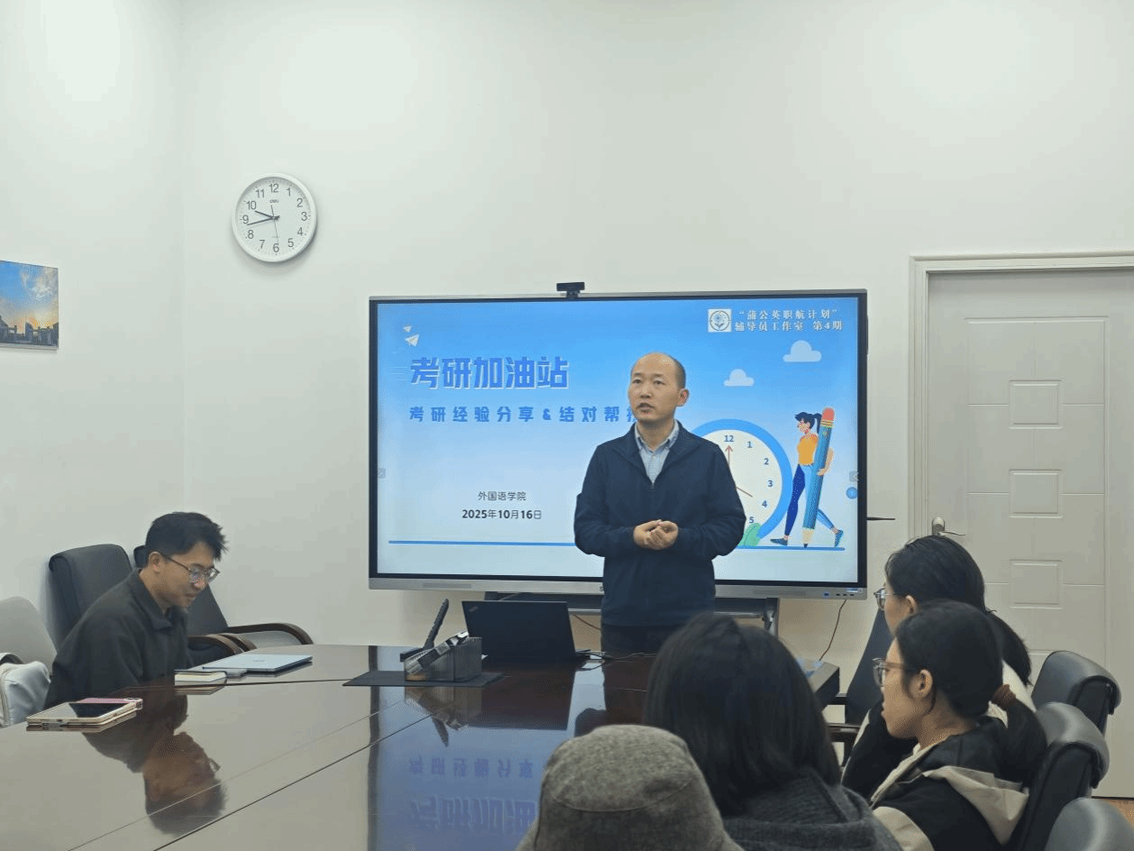 10月16日,在“蒲公英职航计划”辅导员工作室的指导下,学院“语翼知行中心”在219会议室开展“考研加油站”主题活动。辅导员赵青邀请四位研究生新生分享升学备考经验,并启动结对帮扶机制,为有升学意向的大四本科生答疑解惑、精准护航。活动过程中,高幸、方杰、白杨和杨润泽四位研究生依次围绕升学全流程展开分享。择校环节,他们建议结合院校专业实力、地域资源等进行选择,避免盲目跟风;学科准备上,详细拆解单词记忆...