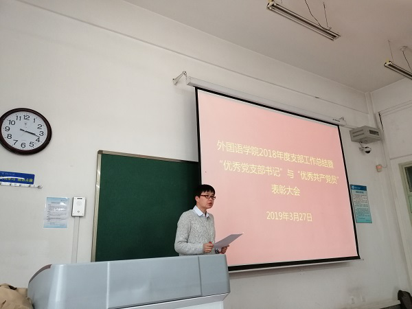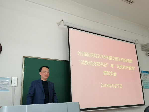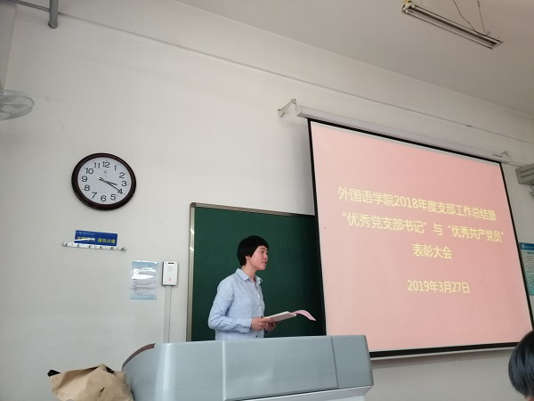 党委在友谊校区西馆X101教室举行2018年度支部工作总结暨“优秀党支部书记”与“优秀共产党员”表彰大会。学院党委委员、各教工支部委员、受表彰党员以及党员代表参加了会议,会议由院党委副书记高敏主持。