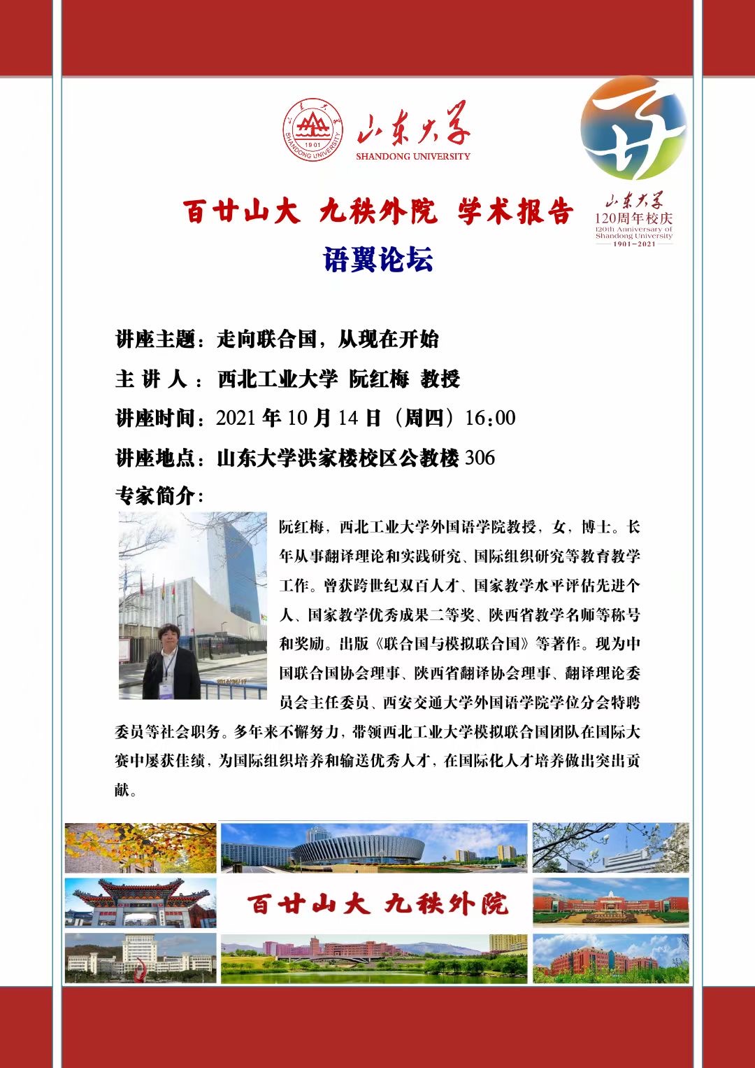 本次调研正值山东大学120周年校庆,阮红梅教授特别在校庆“语翼论坛”活动中为山东大学番号
