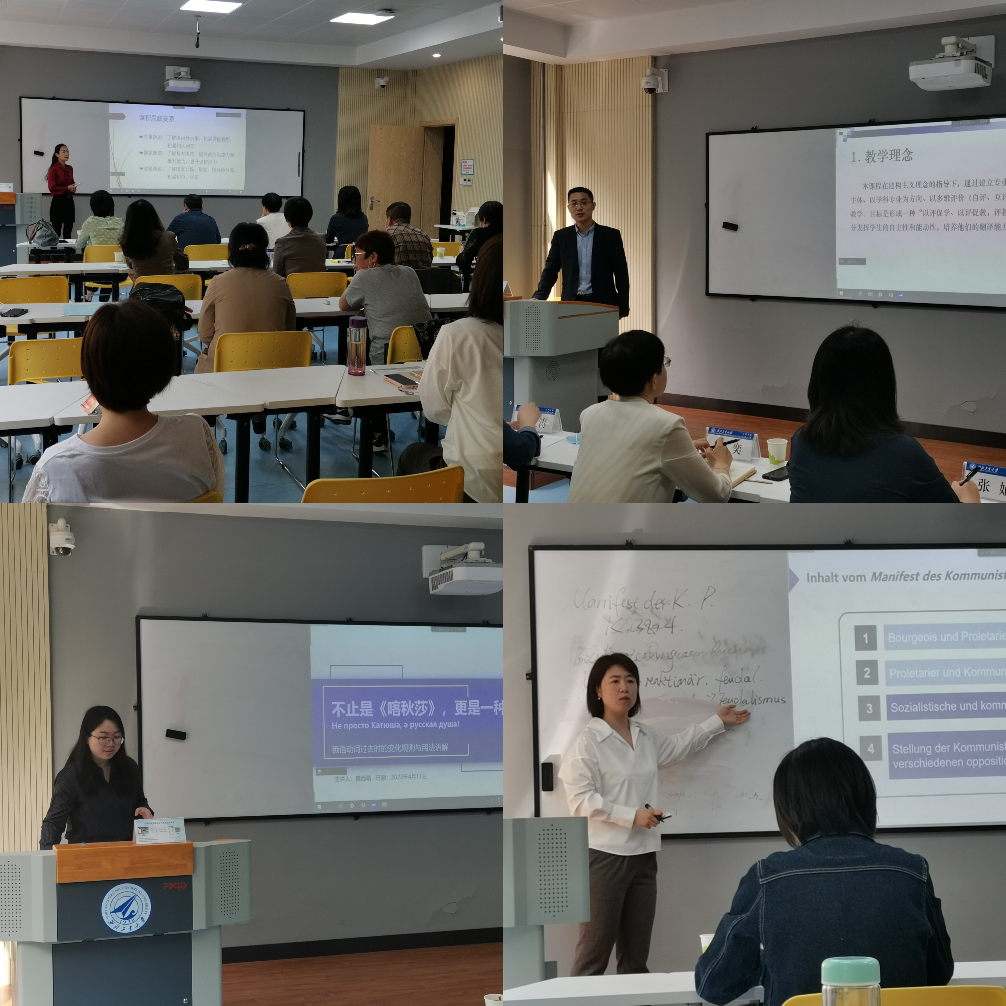 2021-2022年度教师教学竞赛之“外语课程思政”在友谊校区西馆XA301拉开帷幕。本次比赛采取了线上和线下结合的方式开展,番号