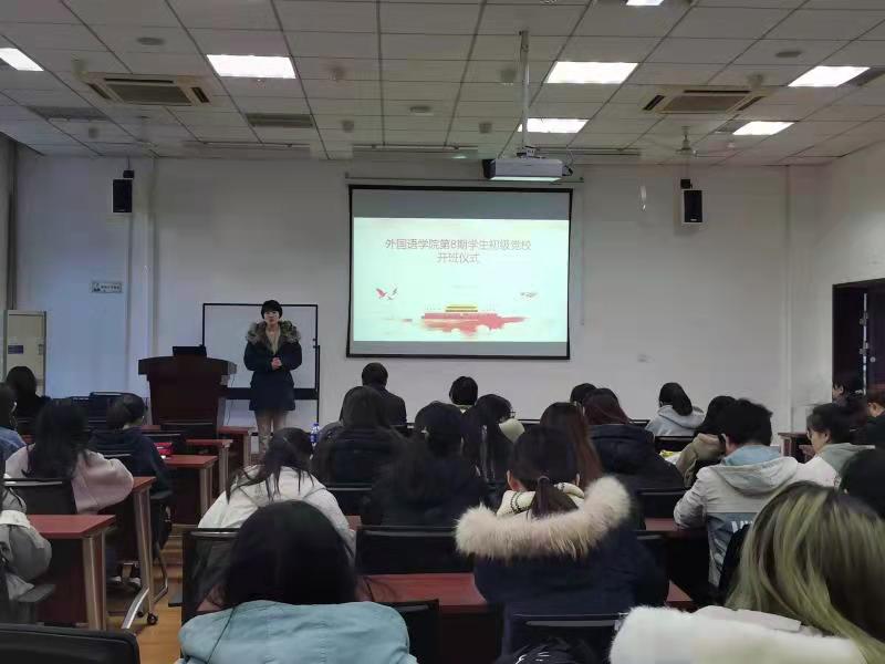 第8期学生初级党校培训班在学院楼204开班。院长孔杰、党委副书记高敏、辅导员郭昕和50余名大一、大二本科生参加了此次活动。开班仪式由高敏主持。