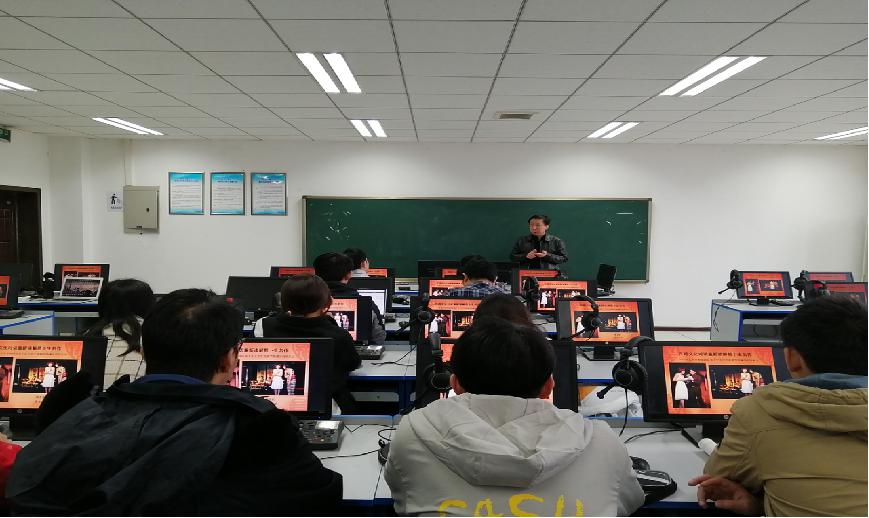 开设,六位外国文学方向不同语种的老师共同合作、倾情打造的面向全校本科生开设的学科专业方向课程和人文素养类通识课程,旨在为学校“双一流”建设、“新文科”“新工科”背景下学校领军人才的培养提供课程支撑和智力支持,是践行课程思政的又一次创新尝试。课程主要包括理论讲解、国内知名影视专家讲座、剧本改写、戏剧排演和公演五部分构成。在剧本改编和戏剧排练环节,除了每周一对一的辅导之外,教学团队还组织了两次集体戏剧排练,并邀请了编剧和表演专业的专家、西北大学高字民教授给学生进行指导。同学们认为这是一门兼具文学性、哲思性、开创性的课程,在工科氛围浓郁的工大“生根发芽”,令人惊喜;也有学生评价说“学习世界经典文学作品,更好的认识了自己、人生和社会”。