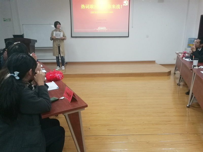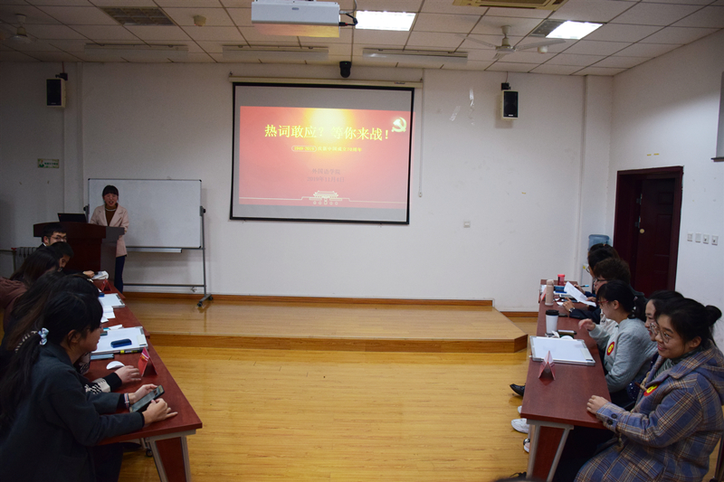 学生党员的党性修养,激发学习理论知识的热情,锻炼专业表述技能,丰富学院文化生活和学生课余生活,经过精心准备,学院于11月3日至5日晚在院楼204和206室举办了“热词敢应?等你来战!”系列比赛,共吸引了来自本、硕6个年级的80余名党员、积极分子及提交入党申请书的新生参与其中。院党委副书记高敏、辅导员赵青、兼职辅导员张暖希、黄奕采担任评委。
