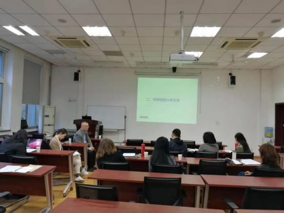 尹晓煌院长首先表达了对新进教师科研工作的支持和重视。学院目前的科研正处于上升期,新进教师为学院注入了新的活力,是未来学院科研发展的中坚力量。尹院长谈到,在“新文科、大外语”的发展背景下,除在传统成果方面应有积累,也应重视智库报告、咨询报告、建言献策等应用型成果。之后,臧小佳副院长介绍了召开此次交流会的目的,并由科研秘书王薇详细介绍了外语学科各级科研项目、成果奖的申报情况、学院近年来的科研成果分析以及学院科研奖励办法。