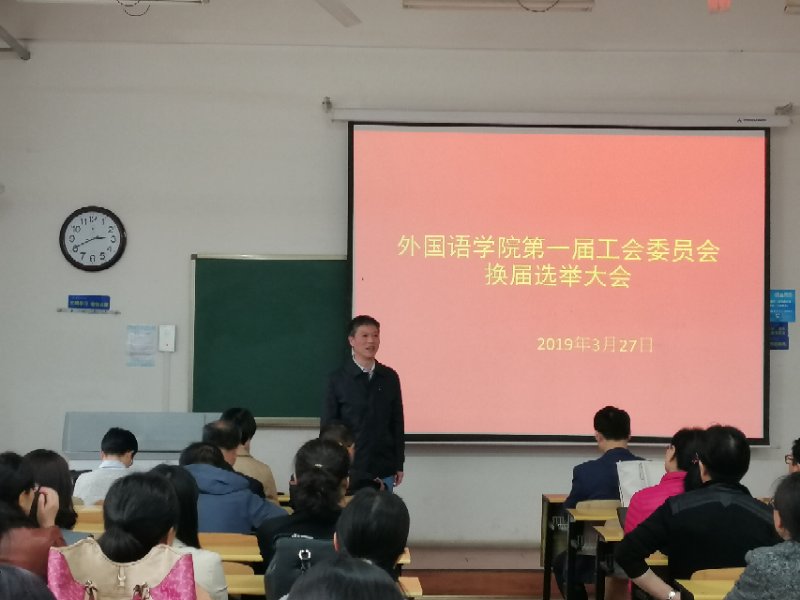 在友谊校区西馆XA101召开学院工会委员会换届选举大会,学院领导班子和学院全体工会会员参加了会议,会议由学院常务副院长、副书记张文涛主持。