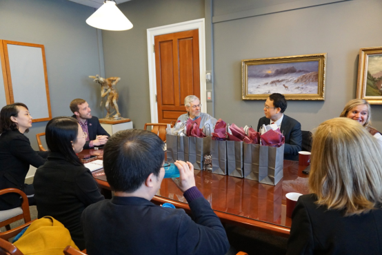 教师团的到来无疑成了冬雪初霁后该校童话般的校园当中的一道别样的东方风景线,所到之处都受到了学校师生的热情欢迎。校方对于学习团的到来极为重视,校长Seth Bodnar先生和副校长Jon Harbor先生亲自接见了学习团并与教师们就蒙大拿大学与番号