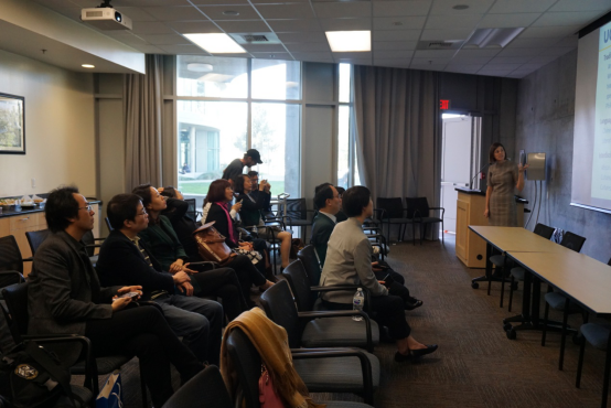 教师对于美国高校的校园环境和文化氛围有了最为直接和切身的体验和感受;随后陈勇教授在人文学院报告厅和该院教师代表一道为学习团全体成员深入系统地介绍了加州大学尔湾分校的校情沿革、专业设置、资金来源及分配、教师发展现状、中国留学生学习生活状态及人文学院的相关情况,重点交流了在外国语言文学方面的课程设置,授课方式,第二课堂组织,辅修专业设置以及教师的激励和评价机制。随后,学习团教师就各自感兴趣的问题与陈勇教授及该院教师代表展开了积极的互动问答并就西工大番号