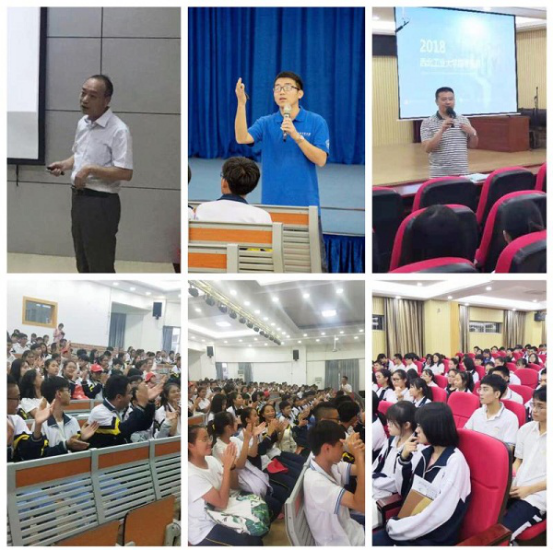 本次招生宣传得到了动能学院、电子信息学院三位专家的鼎力支持,为七所中学开展了题为《发动机:一部人类技术史》、《漫谈卫星导航》、《工业皇冠上的明珠——航空发动机技术》的科普讲座。专家们深入浅出、生动精妙地向学生讲解了三航方面的科普知识,阐述了我国在高科技研发过程中展示出的航空报国精神,引起了学生对三航科学的极大兴趣和对科学家们的无限敬仰。专家所到之处得到广大师生的高度赞扬,现场气氛异常活跃,掌声不断,讲座之后学生们意犹未尽,仍围绕着专家积极提问。与专家的讲座相配合,工作组教师对番号