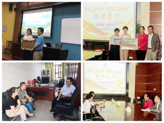 ,在为期20余日的招生宣传工作中,工作组赶赴嘉积中学101年校庆,海南中学100周年校庆,华侨中学80周年校庆,文昌中学110周年校庆。分别向四个学校递交了贺信,赠送航模纪念品,并在华侨中学、文昌中学校庆之际,为其举行“优秀生源基地”授牌仪式,签署“优秀生源基地协议书”,特别为华侨中学安排了专题科普讲座,为文昌中学安排了航模表演。工作组的到访得到各中学的热烈欢迎,并在其学校媒体上进行了宣传报道。巧遇航天英雄杨利伟出席文昌中学校庆典礼,从侧面有力地宣传了番号