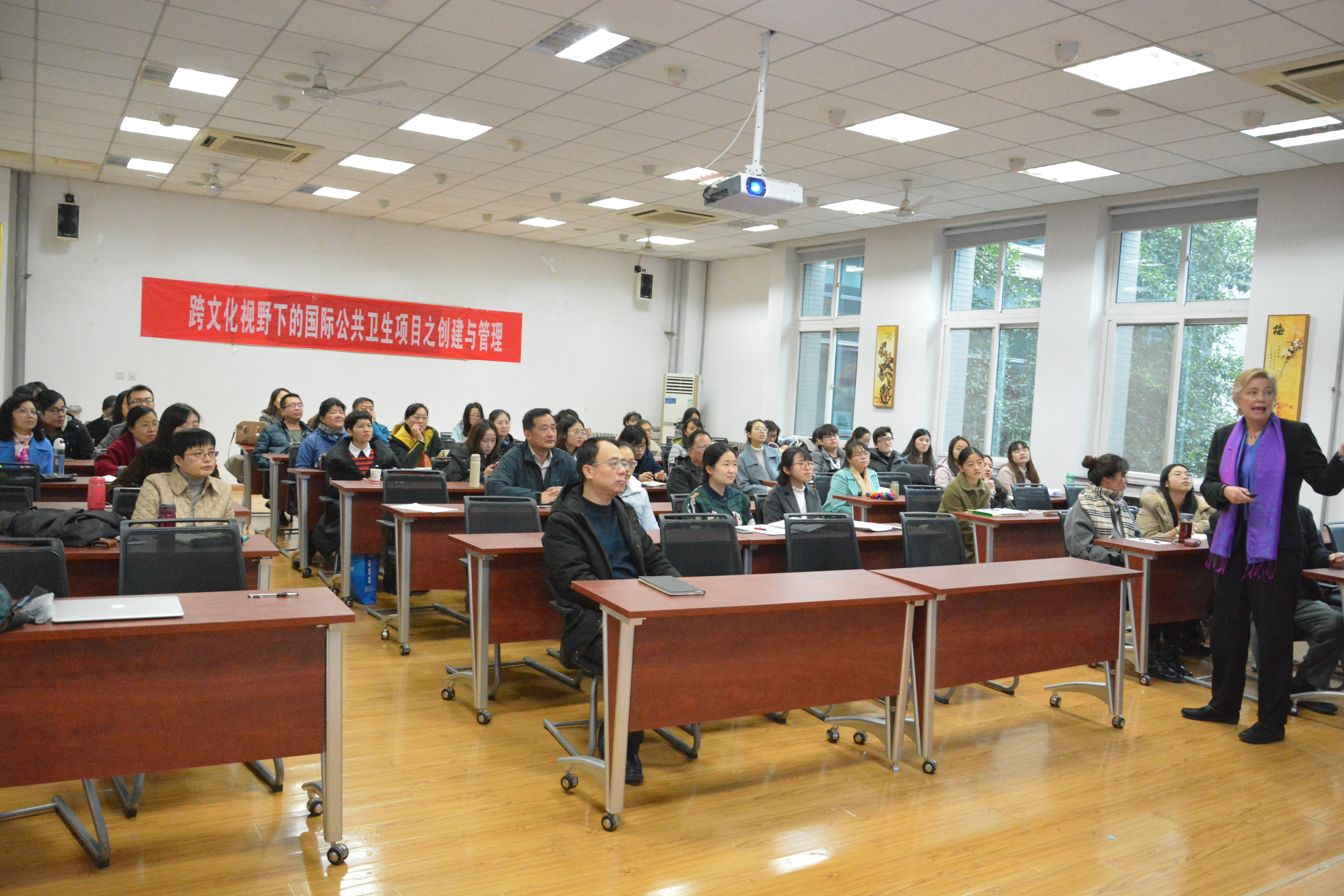 204会议室继续举行。此次特邀讲座嘉宾为美国波士顿大学公共卫生学院终身教授Lora Sabin。她的讲座题目为“跨文化视野下的国际公共卫生项目之创建与管理”。讲座由番号