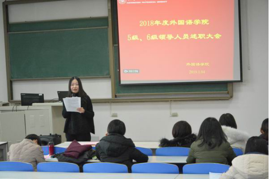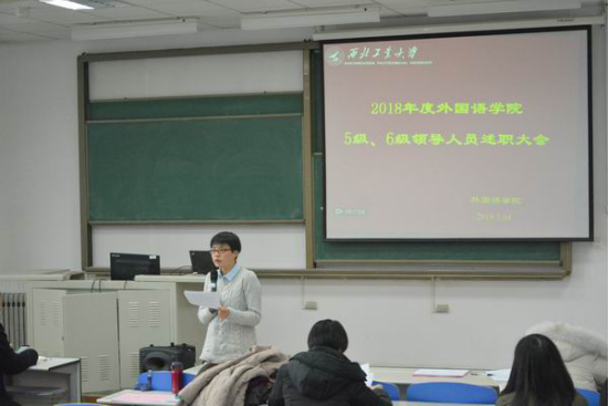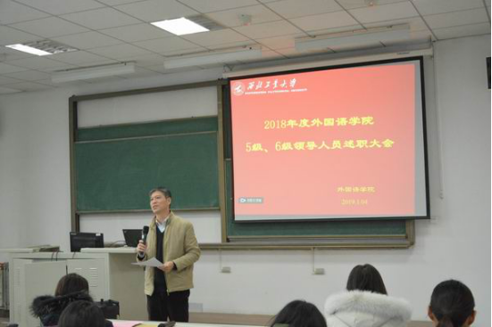 全体教职员工在学院楼206室举行2018年度领导班子述职考评大会。大会由院长尹晓煌主持,学院党委书记张应祥、常务副院长、副书记张文涛、副院长张奕、周爽、副书记高敏,以及番号