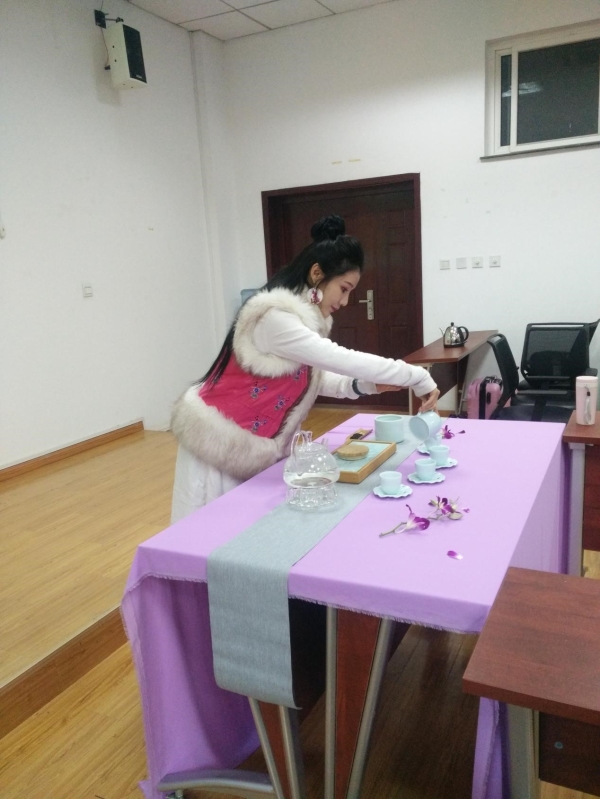 “内外兼修,美丽绽放”系列活动第三场之茶艺·学思·人生在学院楼204继续开展。活动邀请西安市茶艺职业技能培训学校茶艺讲师、国家高级茶艺师刘桂荣、国家二级茶艺技师易娉婷、郝帅之为2018级研究生授课,2018级研究生陈菲主持。