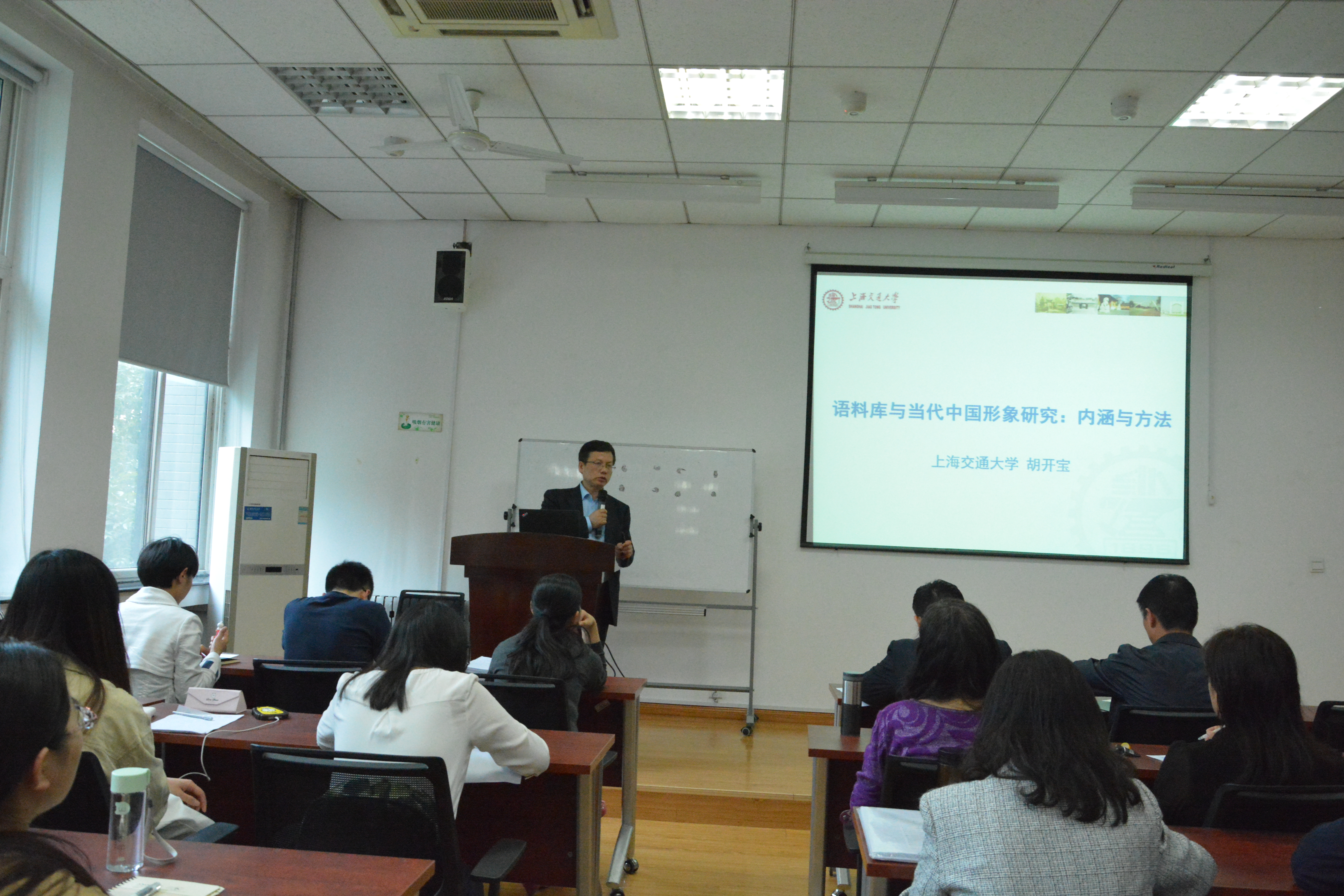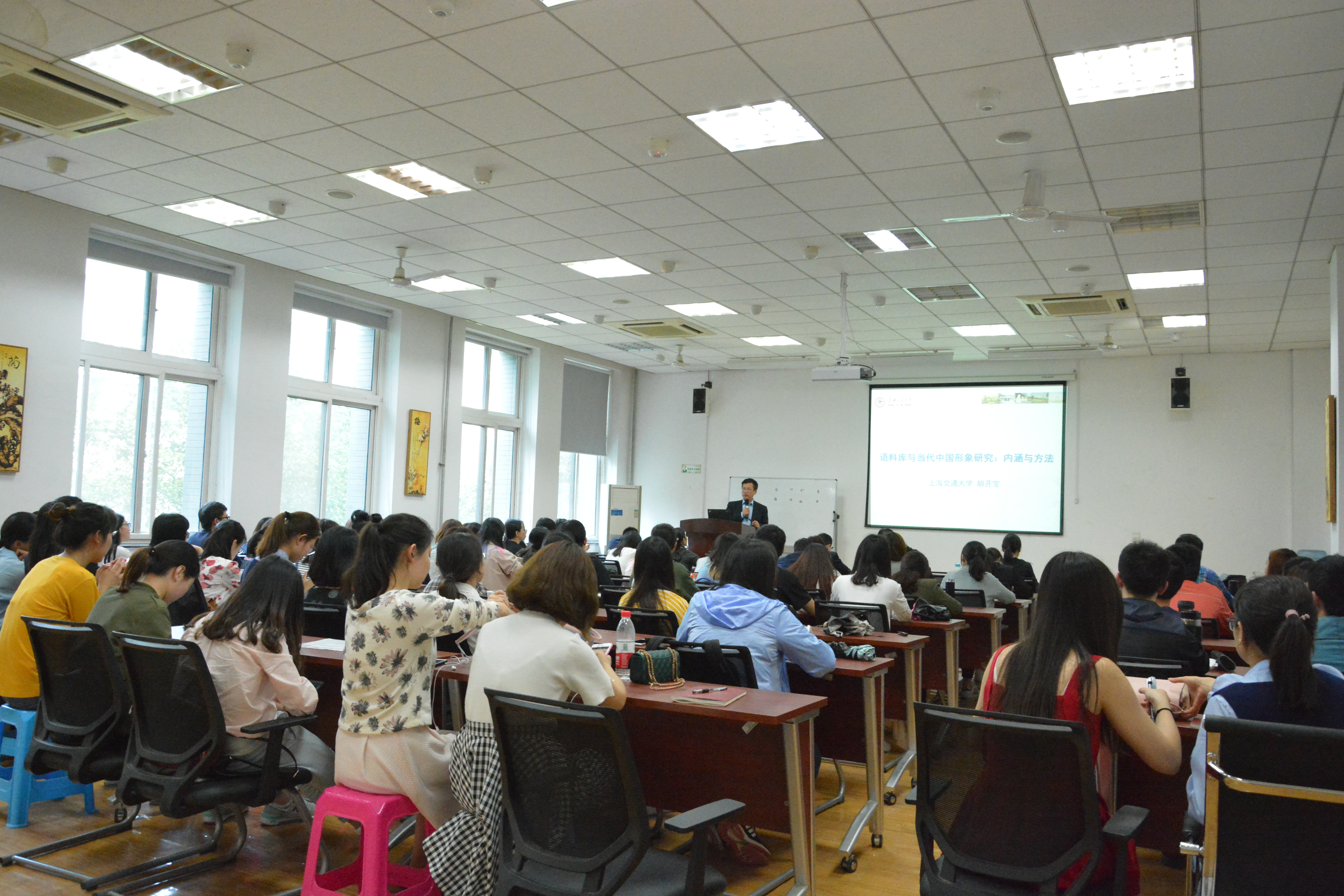 院长胡开宝教授,他讲座的题目为:“语料库与当代中国形象研究——内涵与方法”。讲座由番号