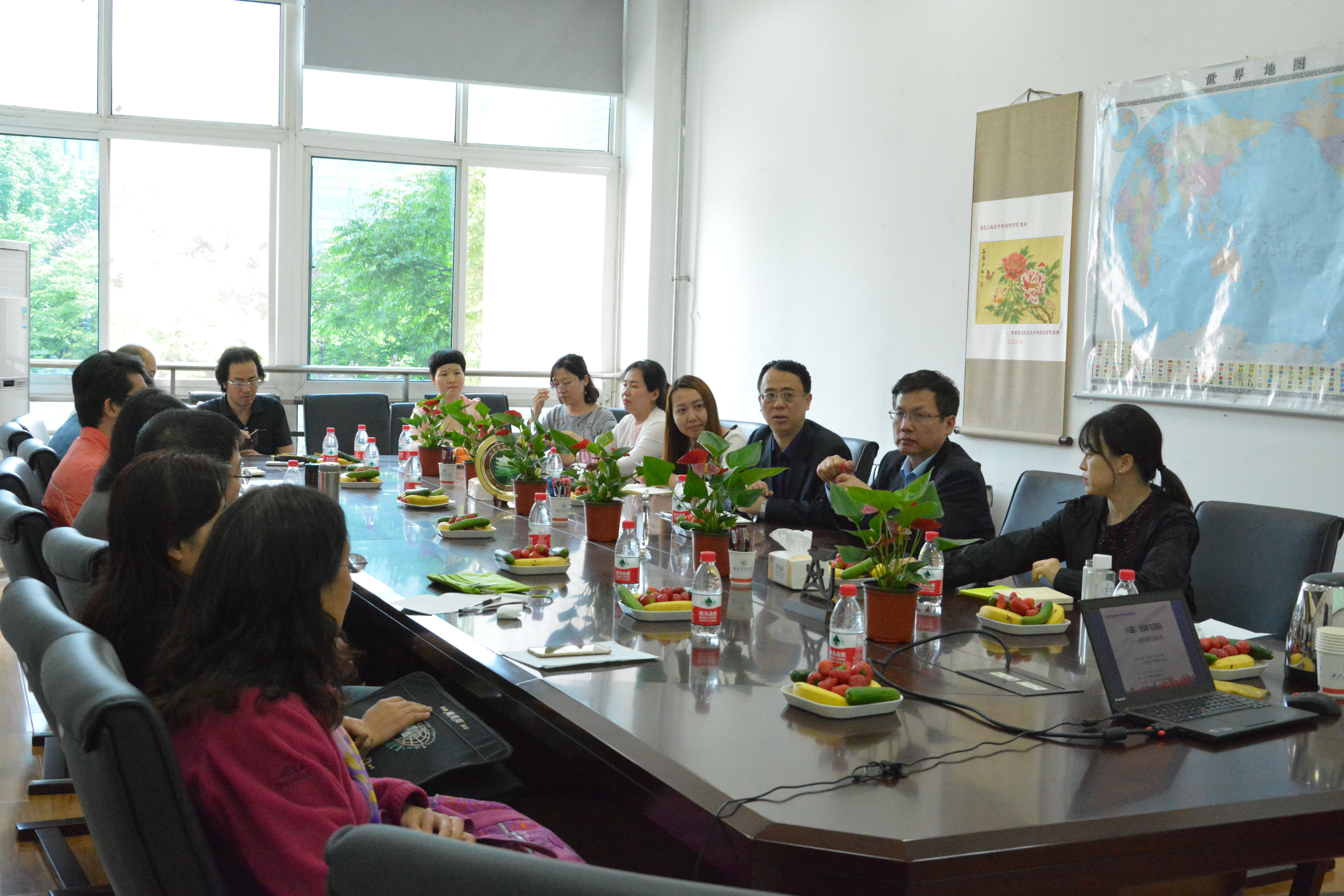 是如何在交大这样的工科院校获得国家项目,并取得显著成绩的。由此引申出科研的三种境界,即为写文章而写文章,为项目写文章和为学科写文章。整个座谈会气氛融洽,胡教授的讲解深入浅出,同时又不失风趣。在座老师都受益匪浅,感慨颇多。最后,双方为进一步科研合作和人才输送而达成了一致意见。