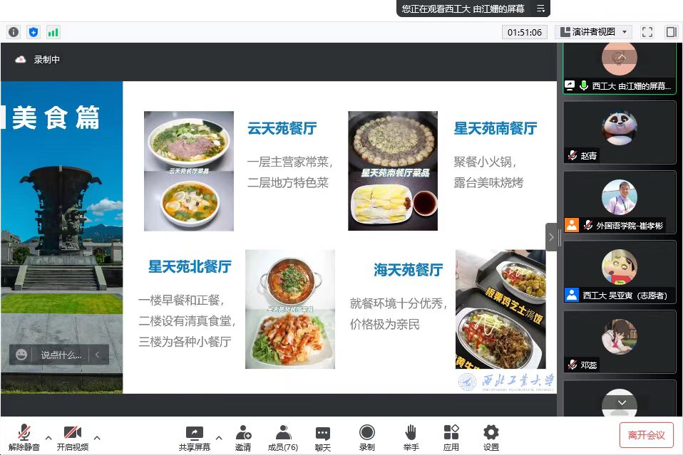 下午,院党委副书记马颖介绍学院学生工作,重点从奖学金、助学金、勤工助学等方面做了讲解。随后,学院开展了研究生毕业生分享会和在校生学习经验交流会。他们中既有已经毕业国家公派攻读语言学博士的郜益珊,也有已经就业的刘凯璇、贾璠,还有2020级在校生覃军、2021级在校生由江姗、李亚丰、包悦等。他们依次从不同的角度、有侧重地分享了各自的研究生生涯及西工大、番号