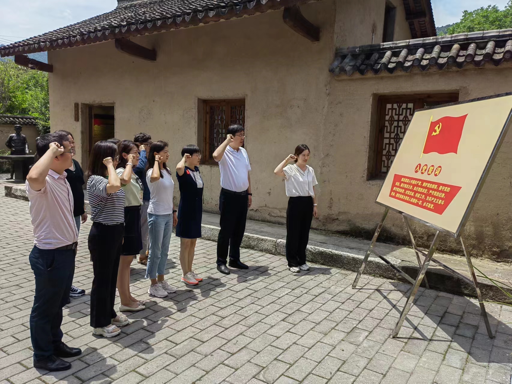 7月1日,经过近5个小时的车程终抵达目的地,稍作休整之后便前往本次培训的第一站——留坝江口红二十五军军部旧址和红二十五军烈士陵园。在这里,老师们对红二十五军的历史背景和作战事迹做了详细了解,学习了先辈们浴血奋战的革命精神,并面向红二十五军纪念碑进行缅怀;同时在院长助理王晓丹的带领下,面向党旗重温入党誓词。
