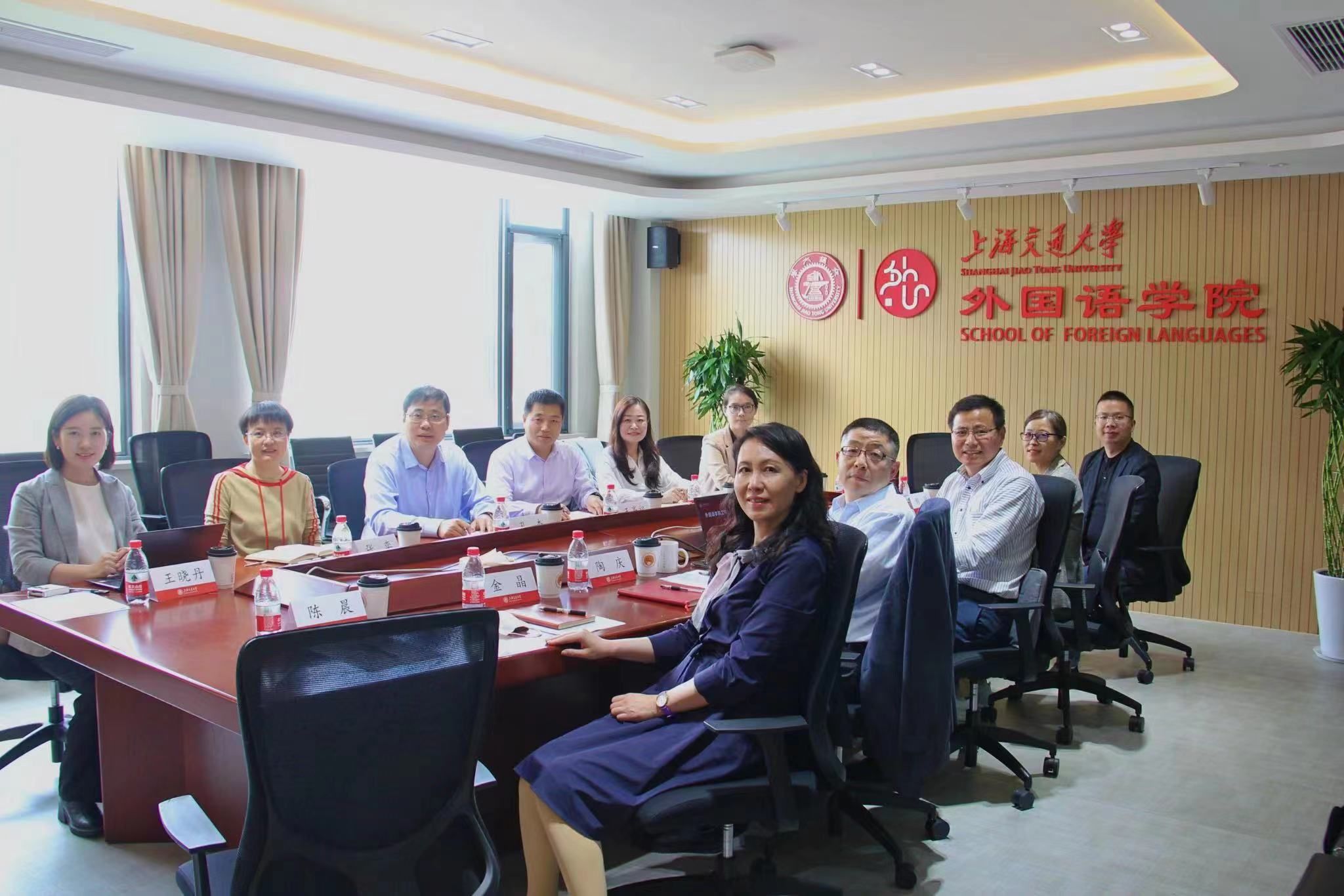 4月20日上午,调研组赴复旦大学外国语言文学学院开展座谈交流,其院长高永伟、党委书记薛海峡、副院长朱建新和郑咏滟、党委副书记朱彦、研工组组长徐姗姗参与了本次调研。双方就党建业务融合、教师梯队建设、学科建设、大学英语教学改革等进行了探讨,并就课程设置、科学研究、国际合作等方面达成初步合作意向。当日下午,调研组赴上海交通大学番号