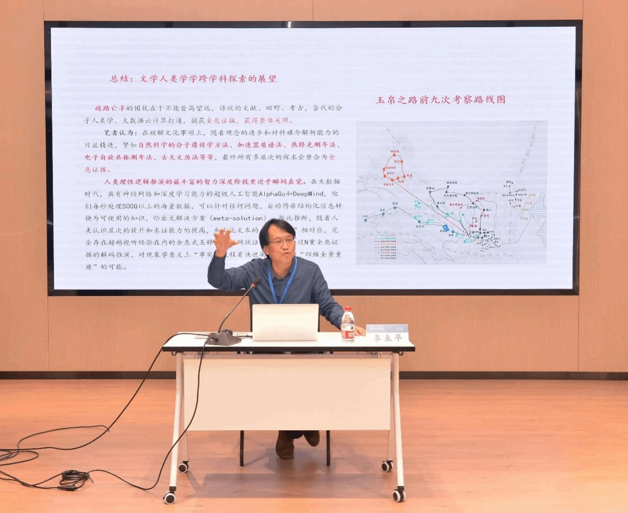 陕西师范大学文学人类学研究中心主任、国家社科重大项目首席专家李永平教授做了题为“近20年文学人类学跨学科研究的理论与实践”的报告。他立足学科打通的理念,阐明文学人类学是以人类学视野思考和研究文学的比较文学研究流派,是20世纪比较文学领域催生出的跨学科研究。作为人类学与文学交流互动的成果,文学人类学天然的具有“跨学科”的特性。李教授以文学人类学在中国的学科发展脉络为线索,从文学人类学产生的学科背景、文学人类学在中国的发展史、中国学者对文学人类学理论的革新与实践三个方面,梳理文学人类学在中国的本土化历程。从理论创新方面来看,文学人类学的中国话语建设主要集中在对早期经典的重释、中华文明探源工程、文学民族志研究以及交叉学科研究四个方面。文学人类学在中国的本土化发展历程,体现着其与中国文化、历史学、考古学、民族学等多个学科领域的交叉融合。周爽副教授认为,李教授的发言令人耳目一新,讲座中文字与插图的呼应与补充另我们看到了文学研究的新的研究方法和研究意义,中国的文学人类学学科目前所取得的成绩是建构中国特色学术话语体系的成功案例,值得进一步交流与学习。李永平教授的发言从文学与人类学、考古学交叉融合的角度呼应了论坛“新文科背景下外国语言文学跨学科研究前沿”的主题。