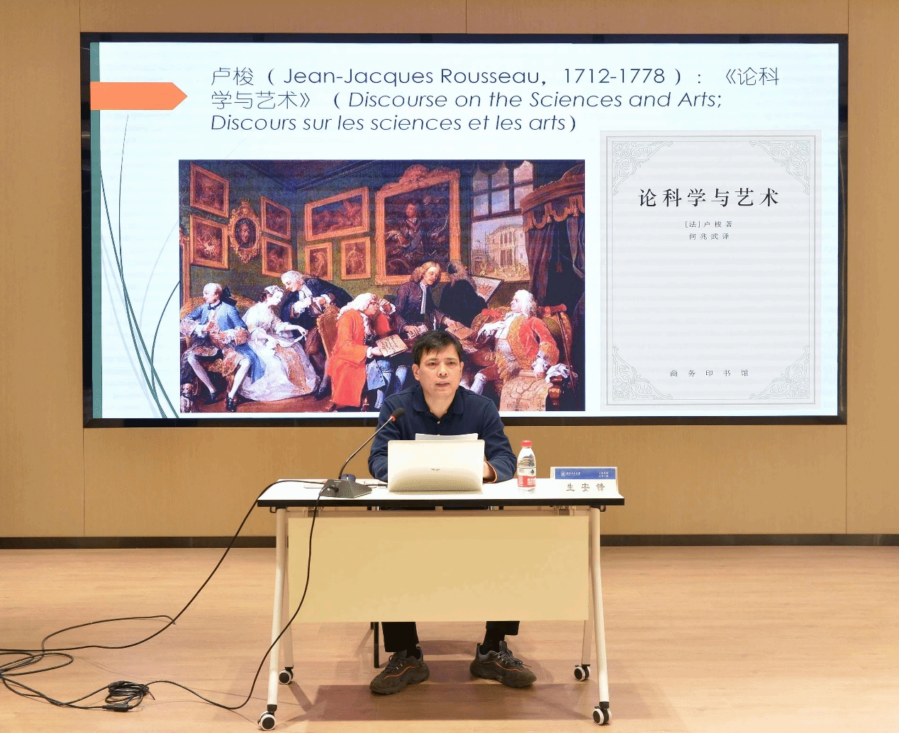 的国防背景和三航特色,如数家珍地列举了学校培养的多位总师及人才培养领域的“西工大现象”。学校尽管以工科见长,但同样特别重视社科类、语言类专业的发展。学校致力于文科建设,推动文科向“小而精”的方向发展,努力为拔尖创新人才提供“大支撑”。在“新文科”建设的背景下,学校积极尝试“语言+智能”、“三航+语言”等学科交叉模式,创新外语专业的发展模式,进而服务国防语言能力建设和区域社会发展。“语言是思维的外壳”,强调要探索发展出具有番号