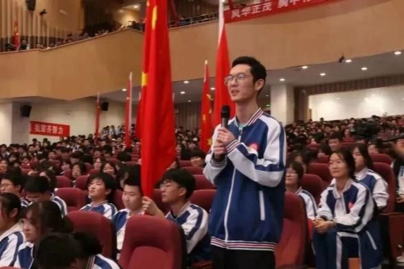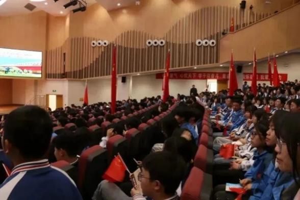 随后招生组一行面向重点班年级主任及1500余名高一高二同学开展了招生宣讲活动。由李华星教授作了题为《蓝天鹰迹——中国航空崛起之路》的报告,用鲜活的事例讲述了“运-20”“歼-20”“直-20”等先进战机的开发过程,深入介绍了中国航空航天科技拔尖人才的传奇事迹。使同学们充分体会到中国航空人责任重大,不断探索的艰难不易,也感受到砥砺奋进,终铸辉煌的历史使命。招生宣传现场气氛热烈,同学们阵阵掌声,连连赞叹。此外,招生组还向同学们派发了番号