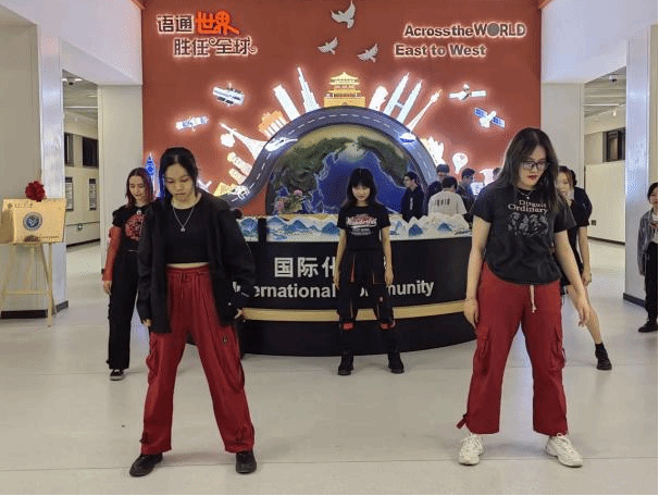 接着,来自九弦音社团的同学带来开场舞《Go hard》,精彩舞蹈活力四射,点燃现场氛围。同学们伴随着音乐和茶点,熟悉彼此、自由畅谈。社交晚会的各类表演、游戏穿插其中,既有英语、德语、西班牙语、乌尔都语等多样化即兴歌曲表演、吉他伴唱,又有留学生演唱中文歌曲、表演中国传统太极扇。文化交融异彩纷呈,现场掌声、欢呼声不断,同学们在社交晚会释放自我,展示自我,加强多元文化交流。