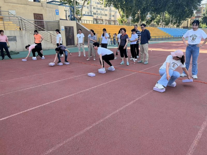 趣味运动会。骄阳当空,晒在操场上每位老师身上,仿佛点燃了大家的运动热情。