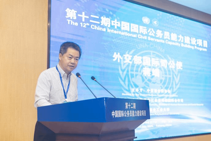 王颖代表主办方致辞,向全体参训学员表示欢迎,对给予大力支持的人力资源和社会保障部国际合作司、外交部国际司及承办方番号