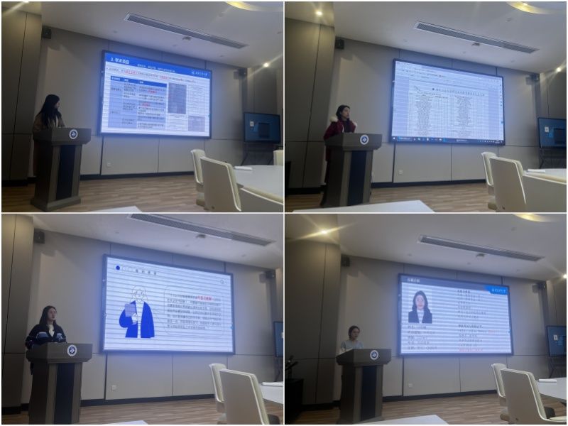 田竞择就读研目标方面分享了自己的心得体会,他建议各位同学应当有一个清晰的规划,要善于利用好身边的资源,多和导师及师兄师姐们沟通。周雅如围绕学习科研、创新竞赛、生活实践分享了自己的事迹,提出学术实践活动可以大胆尝试,要勇于迈出第一步,多尝试或许有新的发现和收获。阎倩雯着重讲述了竞赛方面的个人经验,她从“参加什么””如何参加”“为什么参加”以及“备赛心得”四个维度进行讲述。左晶莹围绕“科研心得”和“学生工作”两方面和同学们进行交流。她提出,读研最重要的是要与自己“和解”,应当了解自己的不完美,心平气和的接受,然后再埋头苦干。孙晨曦就“奖学金概况”“科研情况”“竞赛情况”“全面发展”四个方面进行分享,并从夯实基础、交流互动、解决疑问、潜心科研、确定方向、摆正心态几个方面向同学们提出自己的寄语。刘琼琳就“文体之星”获奖经历分享了自己的个人经验和心得,从文艺才华,科研竞赛及学术成果以及竞选优势做了经验分享。