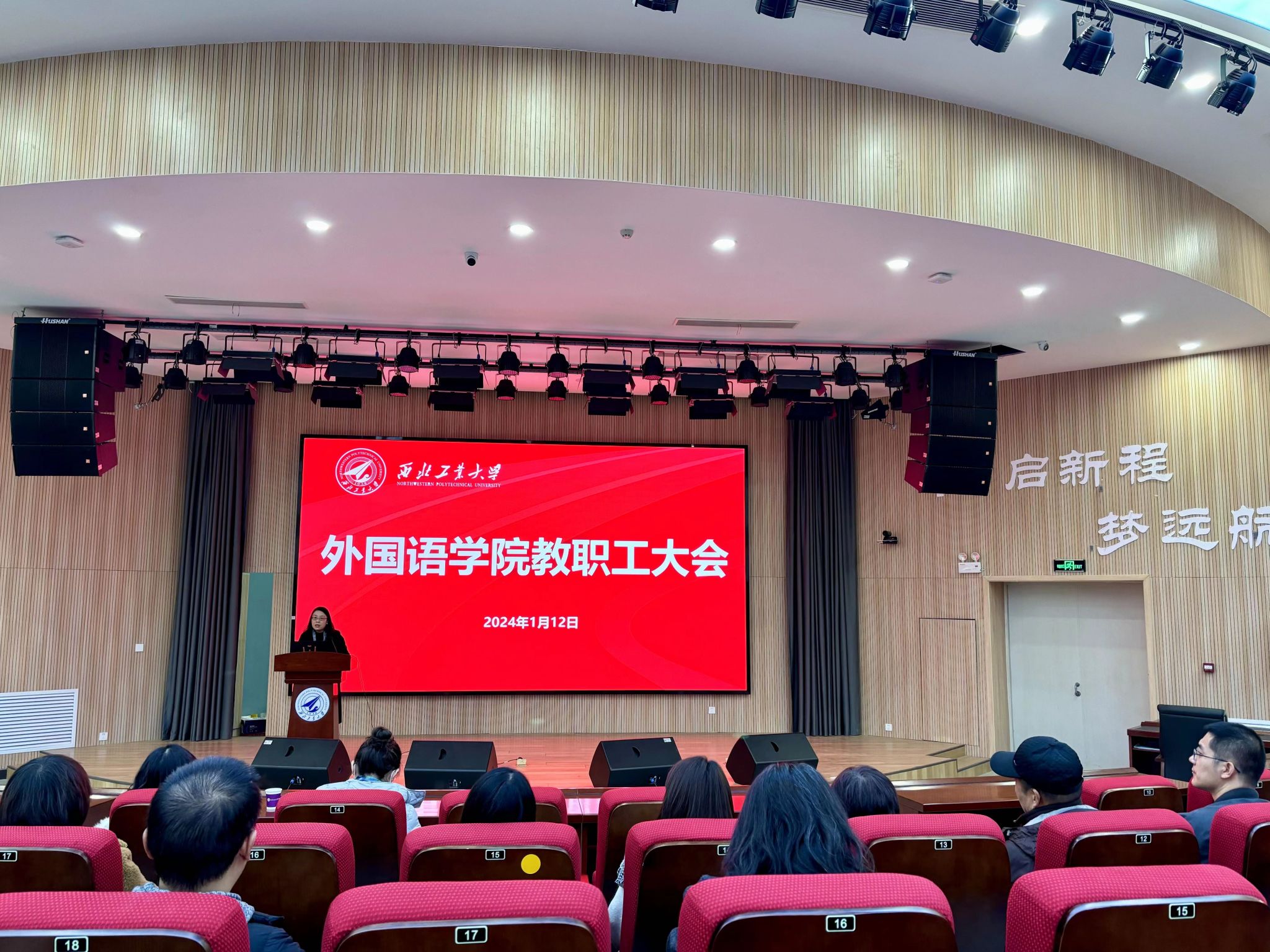 在航空楼报告厅召开期末全体教职工大会。党委书记王高祖主持本次会议。