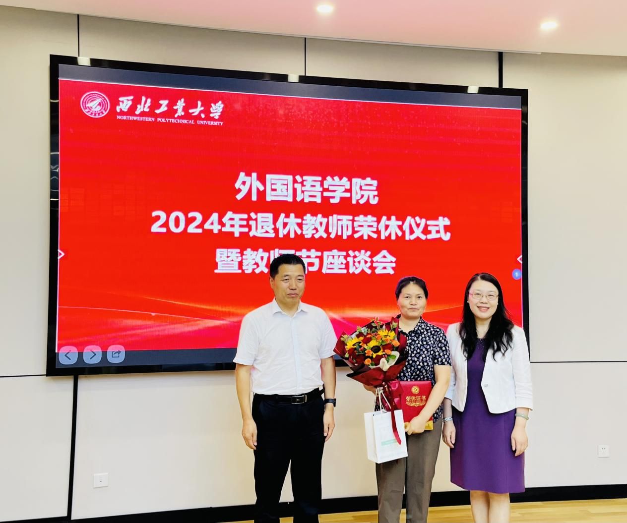 孙瑜院长以第40个教师节为契机向三位退休教师致以崇高的敬意和诚挚的祝福。她表示,在过去的几十年里,三位老师以渊博的学识、严谨的治学态度、无私的奉献精神和高尚的人格魅力,在教育教学的岗位上辛勤耕耘,培养了一届又一届的优秀人才,为学院的学科专业建设和人才培养做出了巨大贡献。