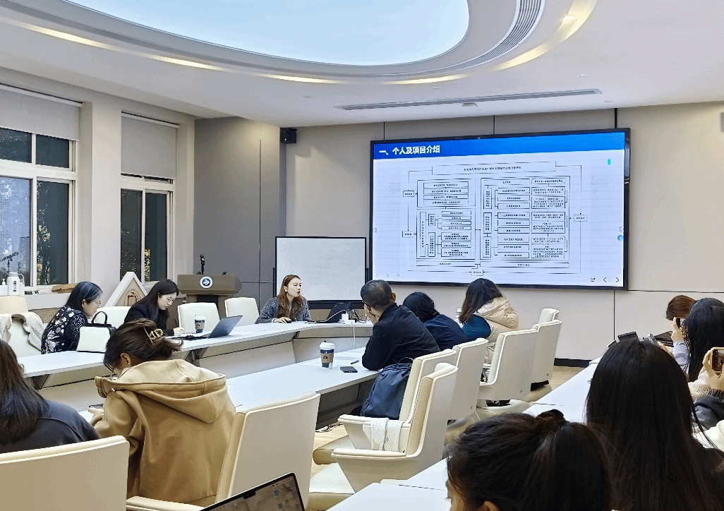 硕士研究生实践创新能力培育基金项目进度汇报会。学院副院长王晓丹、院长助理刘菲,研究生导师董俊虹教授、许霄羽教授、王均松副教授等担任汇报会评委。2024年获得立项的9名同学作项目汇报,另有2022级、2023级研究生旁听观摩。
