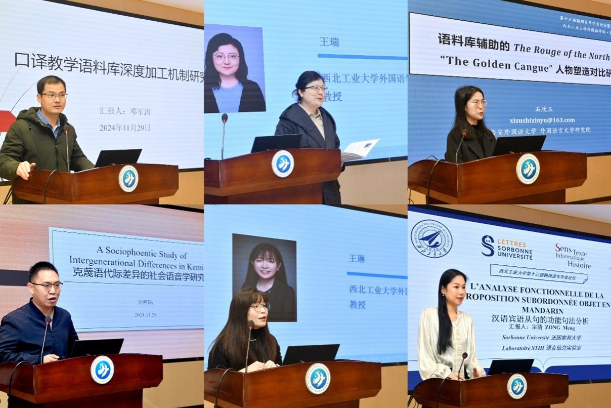 随后,武汉工程大学邓军涛教授、河南工业大学刘希瑞副教授、西安外国语大学石欣玉博士、法国索邦大学宗萌博士等四位青年学者依次作了题为“口译教学语料库深度加工机制研究”“A Sociophoentic Study of Intergenerational Differences in Kemie Language”“语料库辅助的The Rouge of the North和‘The Golden Cangue’人物塑造对比研究”“L’analyse fonctionnelle de la proposition subordonnée objet en mandarin”的报告,番号