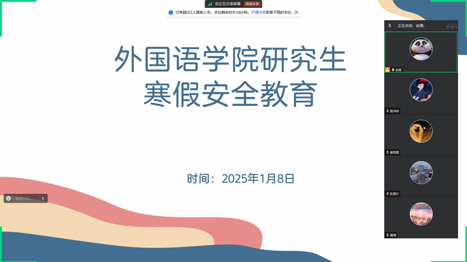 党委副书记、辅导员面向本硕博各年级学生线上线下结合,分批次召开了寒假前安全教育会议。