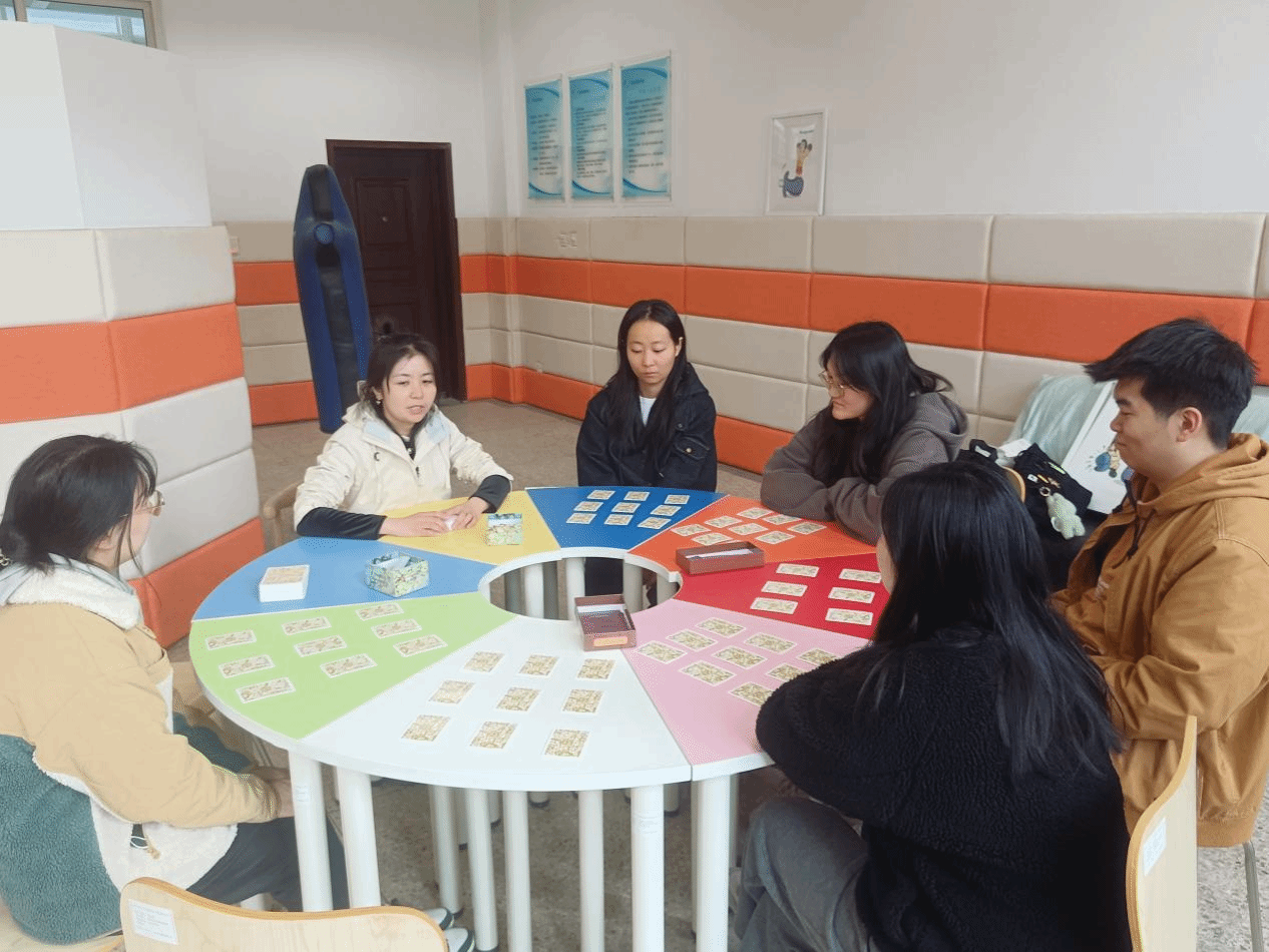 随后,活动进入了“OH卡探索”环节。OH卡作为一种潜意识投射工具,能够帮助人们更好地认识自我,探索内心世界。同学们依次抽取了两张OH卡,分别代表自己的“过去”和“未来”。在老师的引导下,大家认真观察卡片上的图案,并结合自身经历进行联想和解读。一张张OH卡仿佛一面面镜子,照见了同学们内心深处的渴望与恐惧,也指引着他们走向更加清晰的未来。接着,在充满惊喜的“彩虹卡”环节,每位同学都抽取了一张彩虹卡,卡片上写着一句充满力量的话语。这些话语如同黑夜中的明灯,为同学们指明了前进的方向,也给予了他们克服困难的勇气和信心。