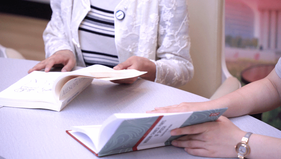 说到翻译生涯中的重要时刻,左老师提到:翻译不仅是语言的转换,更是文化的交流与思想的碰撞。这种思想反哺了我的外语教育工作,使我在教学中格外注重培养学生的跨文化交流能力,助力他们更好地适应全球化时代。笔译在左老师翻译生涯中亦是浓墨重彩的一笔。当左老师从随身皮包中取出两本厚重的译著,轻抚几经磨损的书封时,眼中的怀念与骄傲倾洒,温和的话语叩开那段尘封的记忆。“翻译《美索不达米亚的遗产》一书耗费了我十年的心血。”左老师感叹道,“里面的每一个字都是我反复斟酌后的结果,甚至为了译准学者姓名,查阅大量的日文资料。”翻译是语言的显微镜,左老师不断深挖每个词的基因,将精准与严谨贯彻整个翻译生涯。令我们更为叹服的是,这样一本影响深远的译著一开始连出版都只是虚无缥缈,但左老师甘坐十年冷板凳,用译者的坚守让奇迹落地生花。