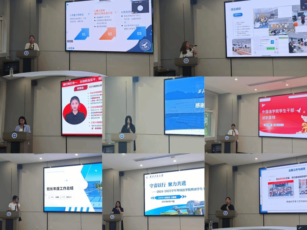 答辩现场,学生干部以PPT展示与口头汇报相结合的方式,全面回顾本学年工作,并从班级学风建设、团日活动创新、心理健康关怀、个人成长等方面用详实的案例和数据,展现了“服务同学、助力班级”的管理成效。汇报中,学生干部们既亮出“成绩单”,也直面问题,在自我剖析中展现责任意识。通过总结、反思、规划,不仅梳理了个人工作,也为各年级提供了交流平台。