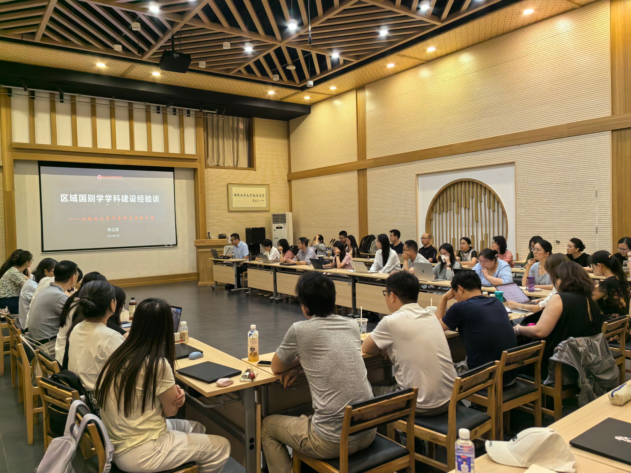 上午,西北大学社会科学科研管理处处长、国家“万人计划”领军人才、教育部青年人才韩志斌教授受邀为全院研究生导师带来题为“区域国别学学科建设经验谈——以西北大学中东研究所为个案”的报告,详细介绍西北大学中东研究所的学科发展经验。他从研究方向凝练、团队建设到学术资源整合、人才培养模式创新等多维度深入剖析,为番号