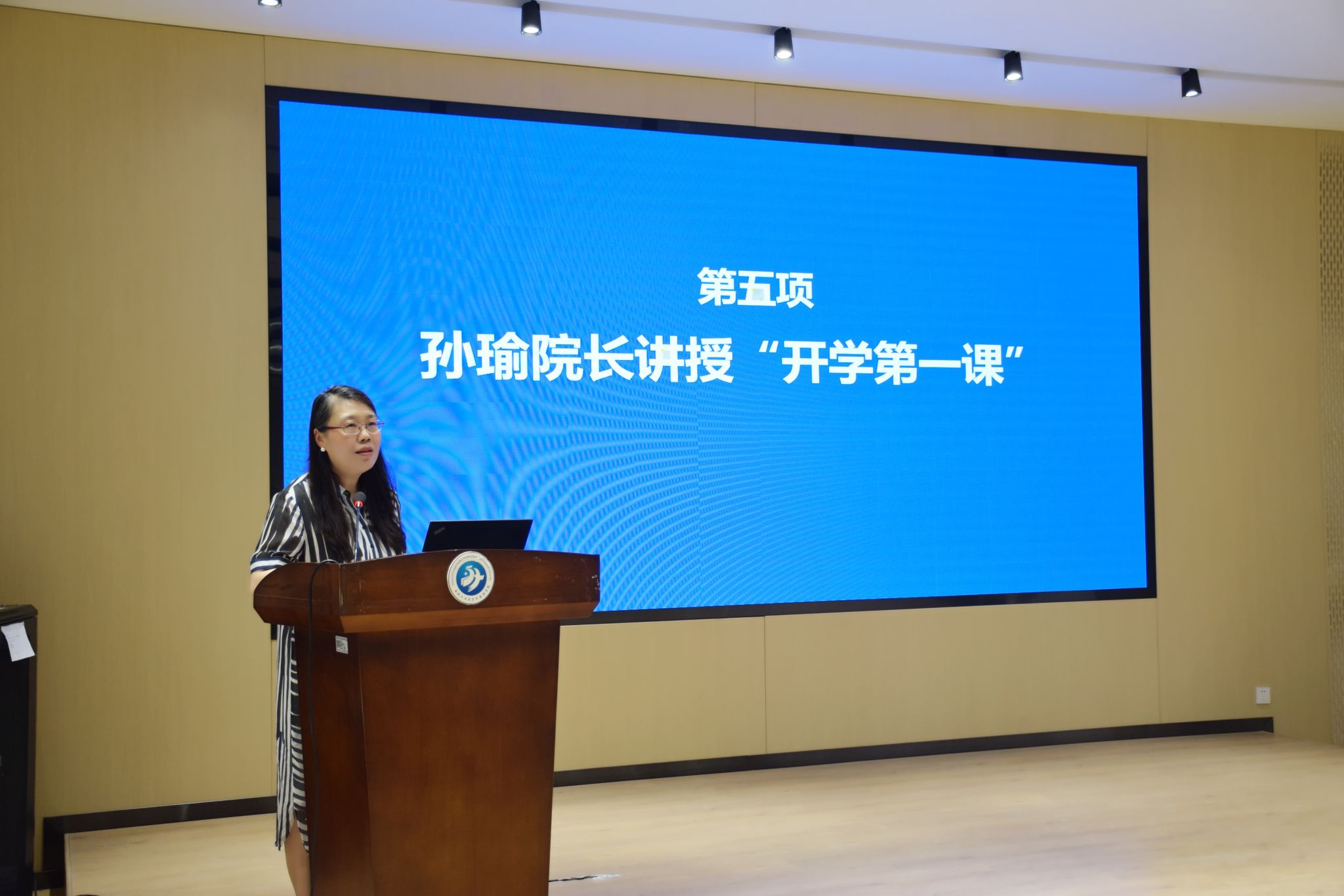 最后,孙瑜以“在不确定中坚定前行”为题,以“这是一个什么时代”“文科何为”“外语人何往”三个发问为引,为全体新生讲授“开学第一课”。她指出,在人工智能与全球化深度转型的背景下,外语学科正经历深刻重塑,外语人应从工具使用者转向价值创造者,具备感知世界、理解他人、表达自我的核心能力,培养职场思维与学术素养,以终身学习的态度应对时代挑战。同时,她还鼓励学生以系统的逻辑、开阔的视野、坚定的信念,在不确定的时代中站稳脚跟、发光发热,在复杂变局中找准定位、坚定前行。