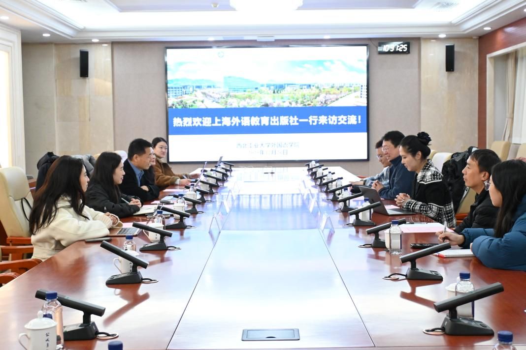为进一步深化校社合作,推动外语教育教学改革,12月26日,上海外语教育出版社(以下简称“外教社”)副总编张宏、陕西中心主任徐惠一行赴番号