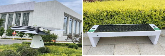 集中办公区太阳能光伏项目在利用新能源的同时,还充分考虑了以人为本的人文关怀,如光伏车棚均配备了快慢充两种充电桩;在光伏座椅加装了可实现手机无线充电的充电器;压力步道可以让群众在健身的同时体会利用人体动能发电的科学乐趣;光伏太阳花可以让小朋友在追光逐日中了解光伏发电原理和效果。所以集中办公区太阳能光伏项目在实现节能减排的同时,也让新能源知识和新能源意识走进了千家万户。