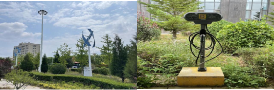 为了更好地发挥公共机构示范作用,中心在集中办公区太阳能光伏项目的前期设计中,不但考虑常规利用办公楼屋顶实施项目,同时还在周边环境中深度挖潜,充分利用停车场、广场、人行步道、绿化带等,因地制宜,设计应用了风能、太阳能、人体动能等多种新能源技术,让示范作用更进一步。