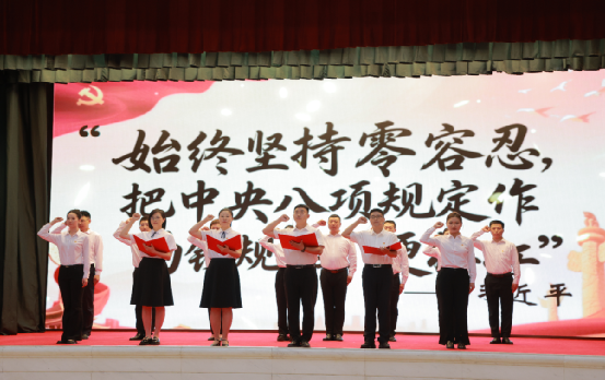 青年理论学习小组以中华民族传统文化、党的红色基因、新时代廉政建设为脉络,从集体朗诵习近平总书记关于作风建设的重要论述、廉政诗词和名言警句为开篇;演绎了我局职能部门下沉调研,帮助基层解决实际问题的情景剧;以设想与现实的反差碰撞为内容展现了党员干部拒绝围猎的小品;以党的历史时期为脉络,情景式还原了革命先驱方志敏、忠诚元帅罗荣桓、时代楷模张桂梅的廉洁事迹;以快问快答的生动形式重温了学习教育应知应会的有关知识,过程中引吭高歌《强国有我》《不忘初心》,最后全体参会人员庄严起立重温入党誓词。主题党课把说教式的教学方式转化为沉浸式的学习体验,让干部职工从“听课人”转变为“剧中人”,切实做到了引发共鸣、引起共情。参加党课的同志们纷纷表示,八项规定彰显着坚持党要管党、全面从严治党的坚定决心,重塑了党风政风,引领着社风民风。作为机关事务人,管的是“事务”,守的是“规矩”,树的是“作风”。未来要以更严标准、更实作风、更优服务,为机关高效运转保驾护航,为党风政风激浊扬清贡献力量。